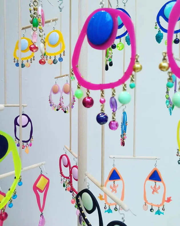 Installation of 16 pairs of Beady earrings